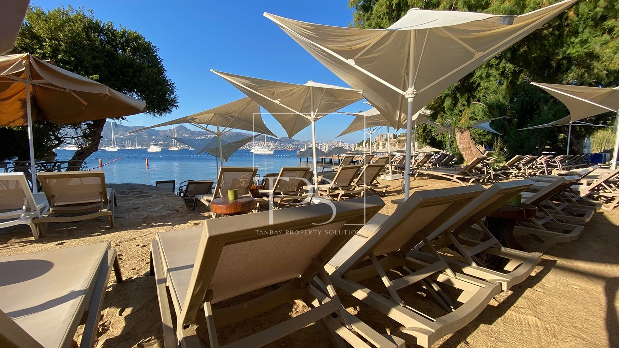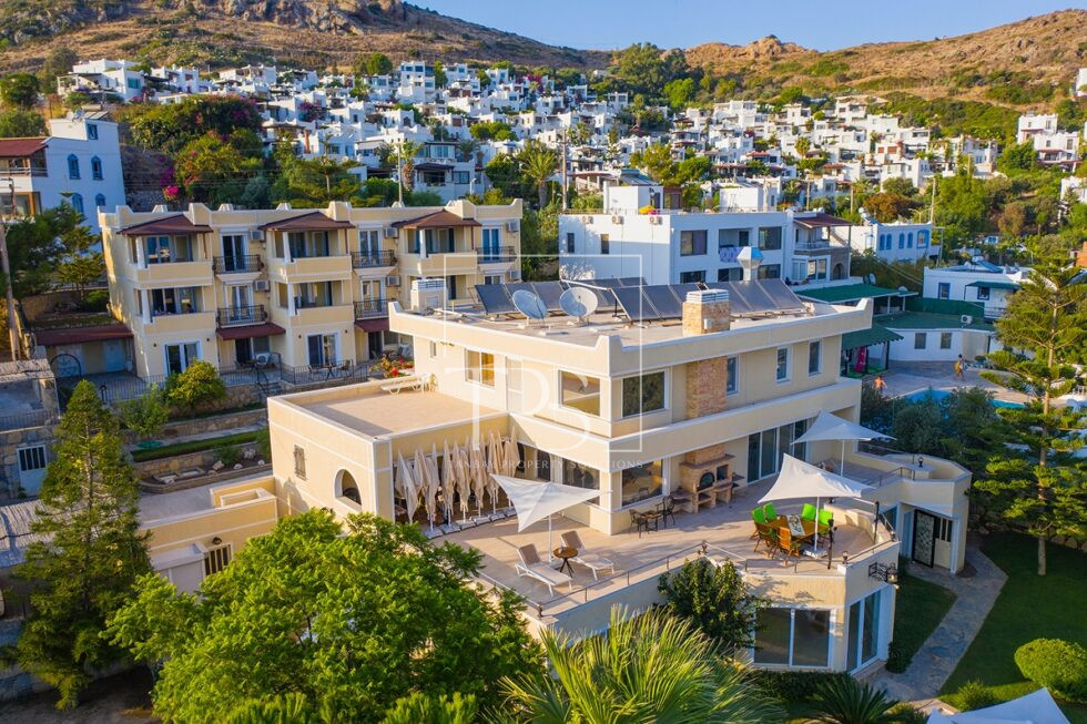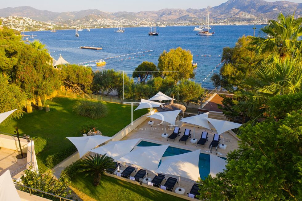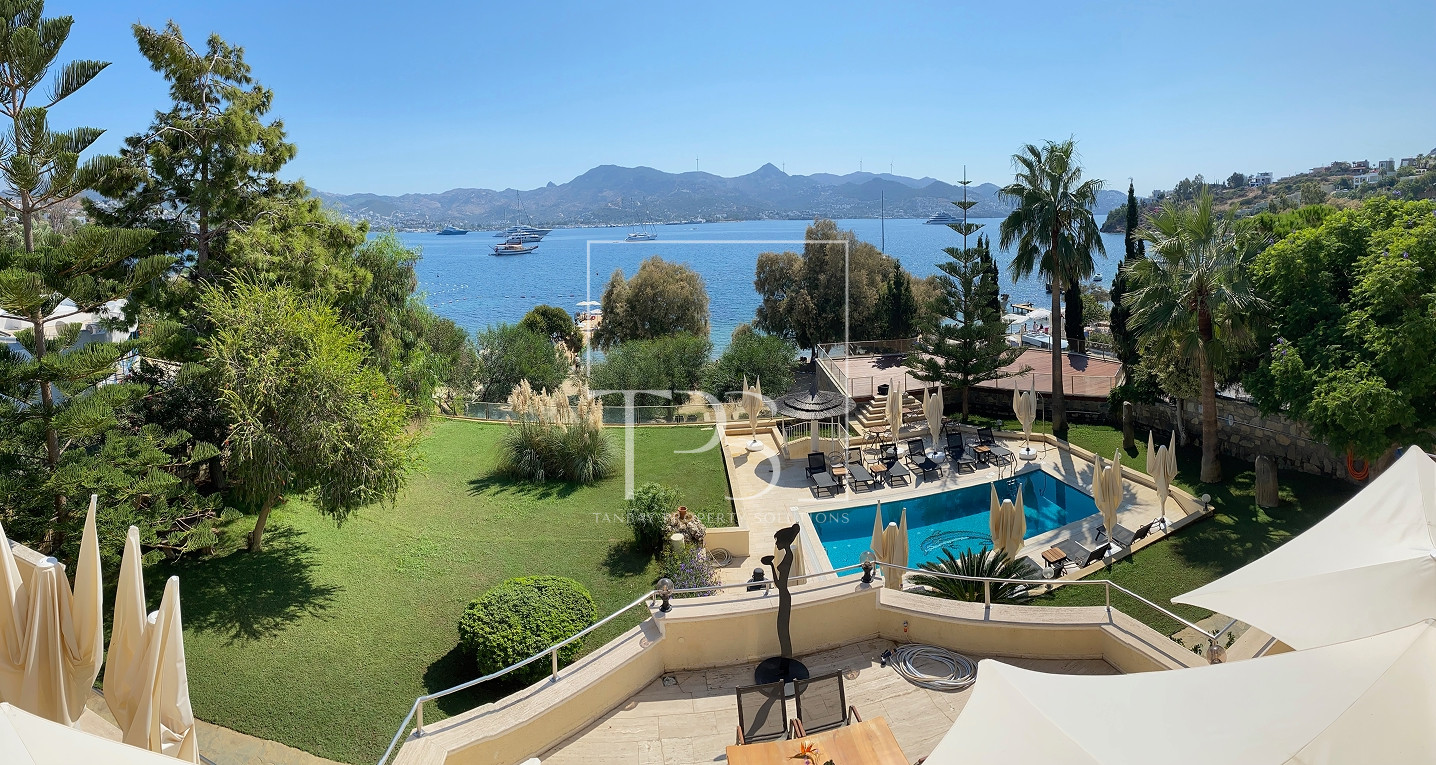 Seafront Estate in Yalikavak: Grand Villa with Pool, Garden, and Aparthotel with Direct Sandy Beach Access