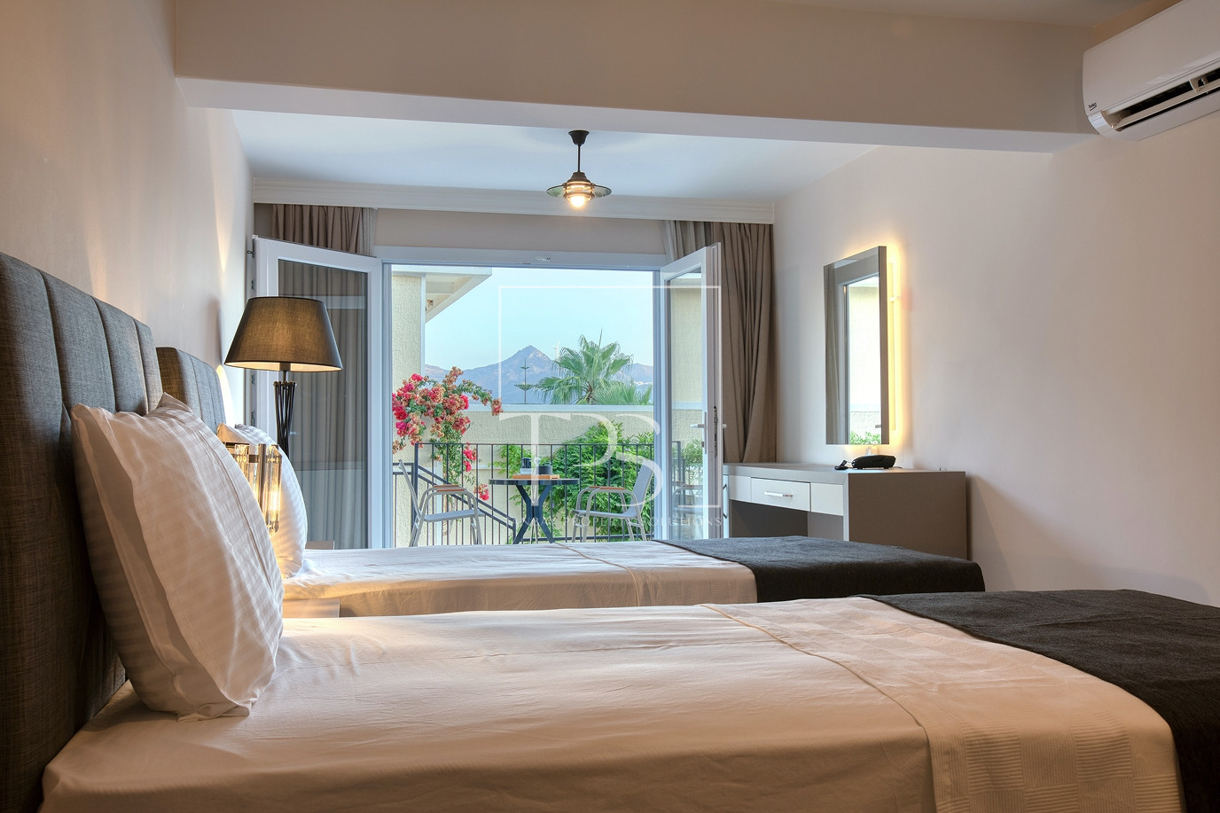The beach directly in front of the property is currently leased from the authorities by the owner. Equipped with a lovely beach bistro and bar, this area is currently utilized as a private beach for the aparthotel guests and the owners.